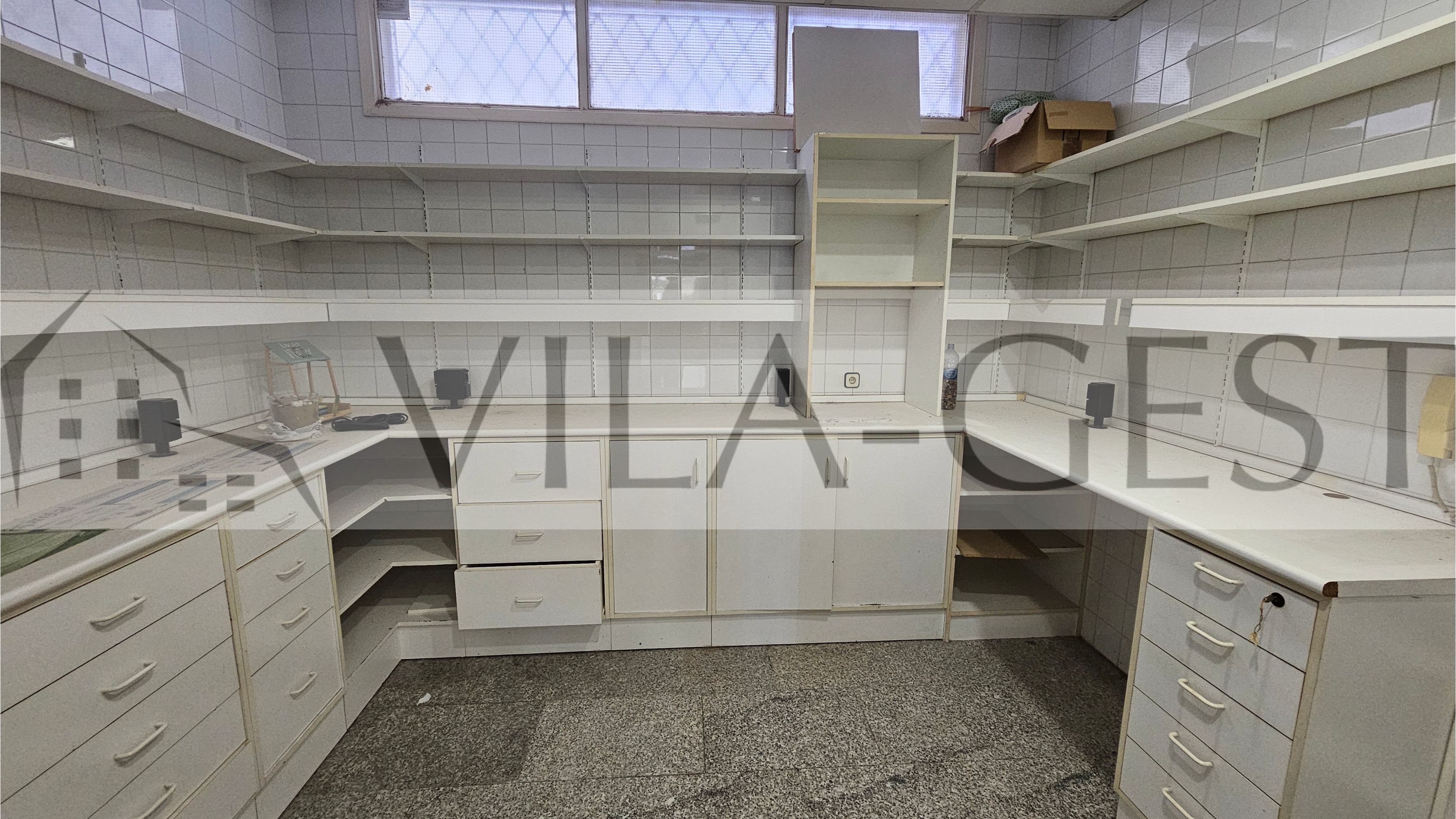 - Disposa de nombroses prestatgeries i aparadors, a causa del seu ús anterior com a farmàcia.